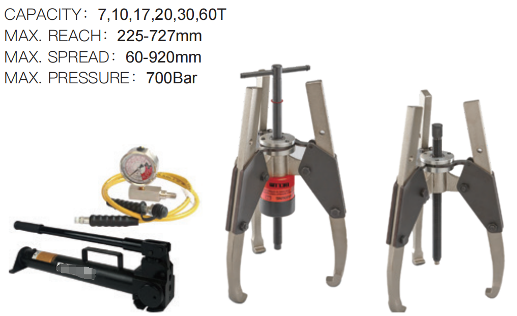 - बहुमुखी प्रतिभा: Suitable for various applications, including pulling, धकेल्दै, installing, and removing press-fitted or heat-fitted parts such as wheels, sprockets, flywheels, gears, and bearings.